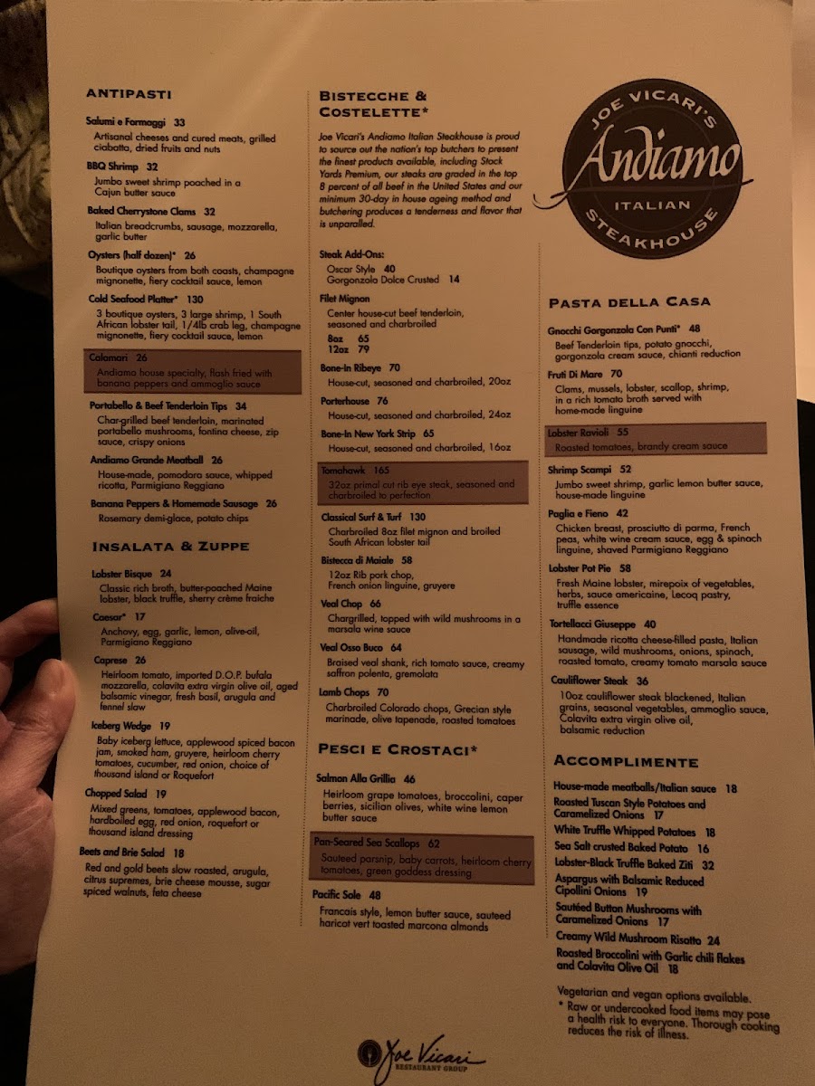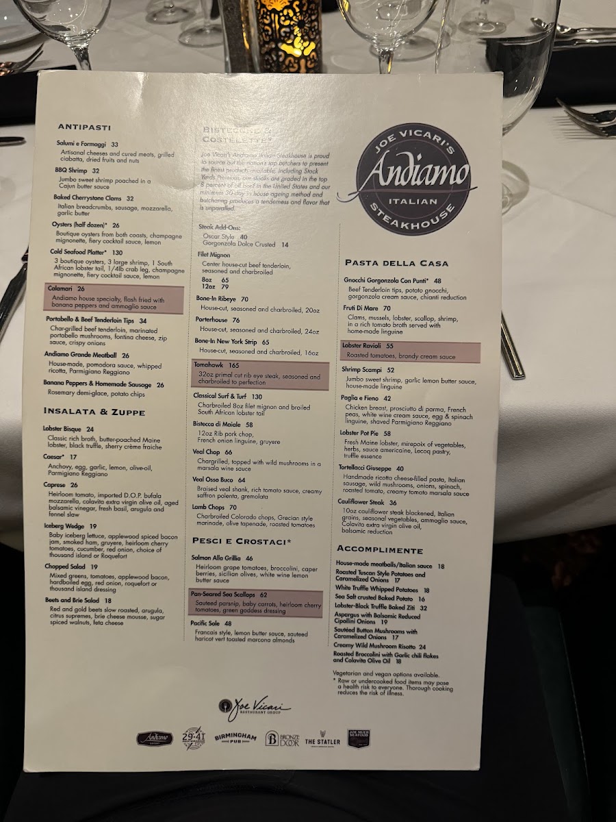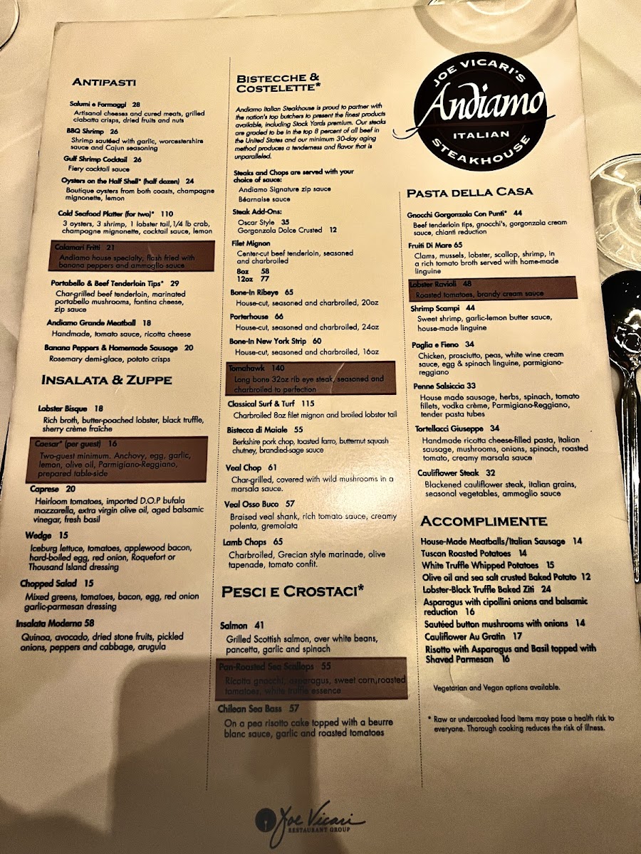 Andiamo Steakhouse Menu